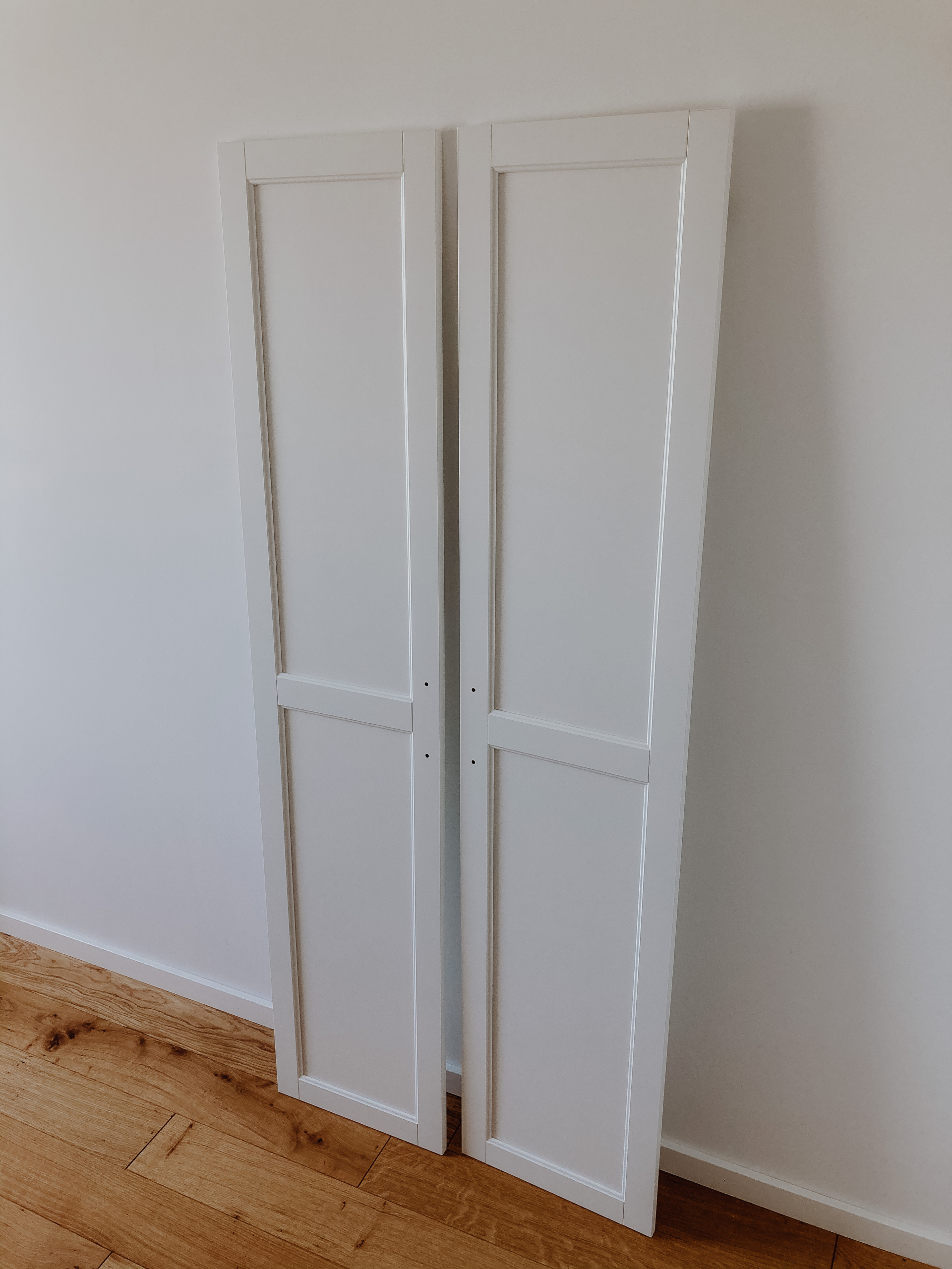 Im letzten Schritt müssen die Schubladen und die Türen nur noch gemäß der Aufbauanleitung in die fertig aufgebauten Möbel eingesetzt werden. Wir haben die Griffe vorher noch mit Goldspray angesprüht. Das Ergebnis kann sich meiner Meinung nach absolut sehen lassen. Wir lieben unsere DIY-Kleiderlösung sehr.
